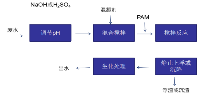 混凝沉淀法是工業(yè)廢水處理中經(jīng)常采用的一種方法,通過投加化學(xué)藥劑使水中一些金屬離子和膠體粒子與微小懸浮物聚集混凝,再沉淀,以去除廢水中離子成份、細小懸浮物及膠體顆粒,降低廢水的濁度和色素。